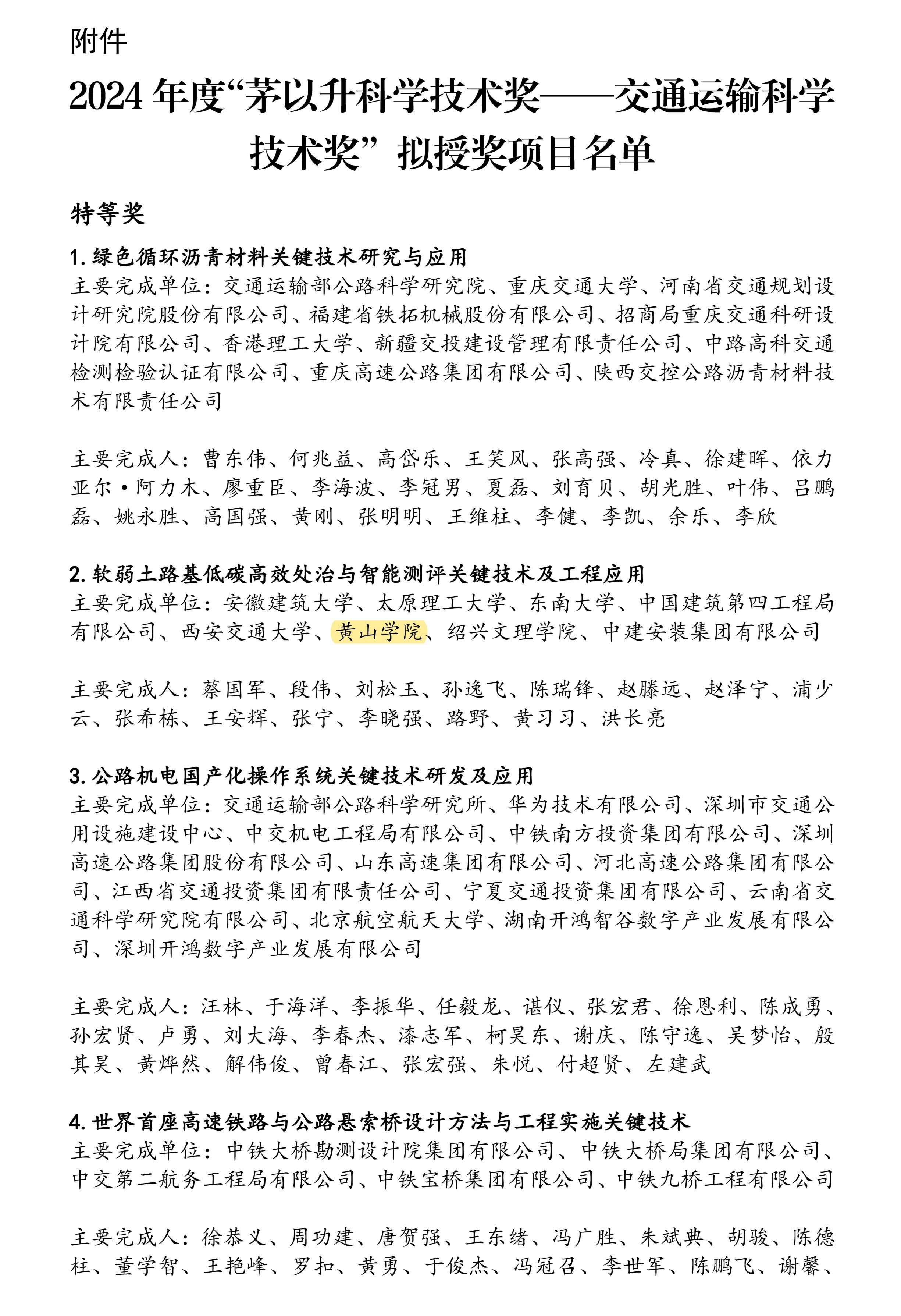 近日,北京茅以升科技教育基金会公示了2024年度“茅以升科学技术奖—交通运输科学技术奖”评审结果,我校建筑工程学院教师王安辉博士参与完成的“软弱土路基低碳高效处治与智能测评关键技术及工程应用”项目荣获科学技术奖特等奖。