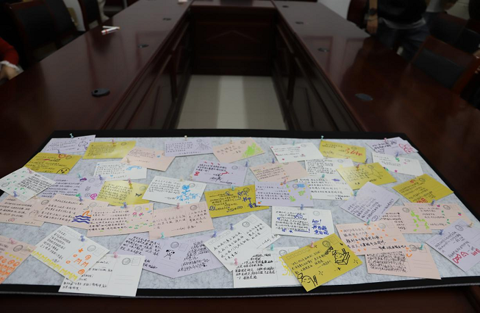 5月,生活权益部开展“见字如晤·笔尖疗愈”,引导学生通过书写、分享、投放“情绪垃圾桶”等方式,释放考试压力;素质拓展中心设置“心情漂流瓶”以励志话语为引,线上分享会与留言墙为学生提供情感倾诉渠道,传递精神力量。