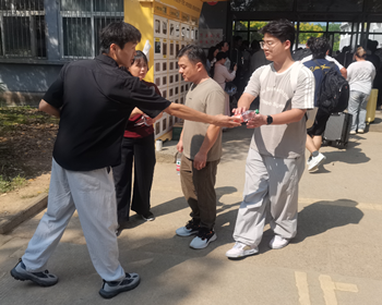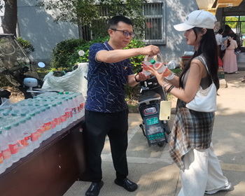 后勤党支部组织开展了“一杯清水润心田,支部关怀在身边”志愿服务主题党日活动,支部党员佩戴党员徽章,于27、28栋新生宿舍前设立迎新生送水志愿服务点,向风尘仆仆的新生及家长们,递上一瓶瓶清凉的饮用水,并送上亲切的问候:“同学辛苦了,欢迎来到新家!”“天气热,叔叔阿姨您喝点水,休息一下。”为初入校园的新同学和家长送上一份关怀与清凉。一瓶水,一份情。这看似微小的举动,不仅缓解了新生及家长旅途的疲惫与暑热,更传递了后勤党支部浓浓的关怀和后勤人热情周到、细致入微的服务理念,是一次具有特殊意义的主题党日。它不仅拉近了党组织与新同学之间的距离,增强了党支部的凝聚力、向心力和战斗力,更是将后勤服务保障工作前移,展现了后勤系统“管理育人、服务育人”的良好形象。