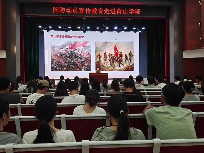 为教育引导青年学生牢记历史、关爱老兵,勇于献身国防事业。9月17日下午,校青马班在率水校区大学生活动中心大礼堂举办国防安全主题报告会。黄山市退役军人事务局黄亚明应邀作题为《关爱老兵是一场幸福的“双向奔赴” 献身国防是一场稳赢的“人生抉择”》主题报告,市国防动员办和团委工作人员、校院两级青马班学员参加了本次活动。