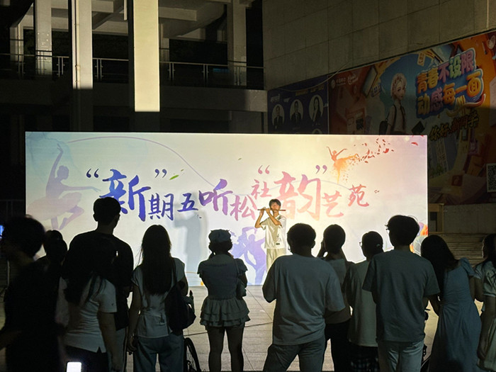 9月19日晚,由校团委主办、学生社团联合会承办的“‘新’期五听松社‘韵’艺苑”活动在率水校区大学生活动中心楼下热烈开展,为秋日校园注入满满艺术活力。