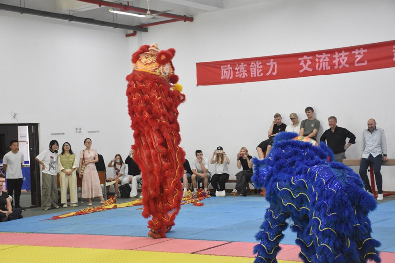 9月24日上午,体育学院学子在风雨操场为丹麦师生带来精彩的舞狮舞龙表演,并指导丹麦学生学习中国武术。一招一式间,不仅是技艺的传授,更是意志的磨砺与文化的共鸣。