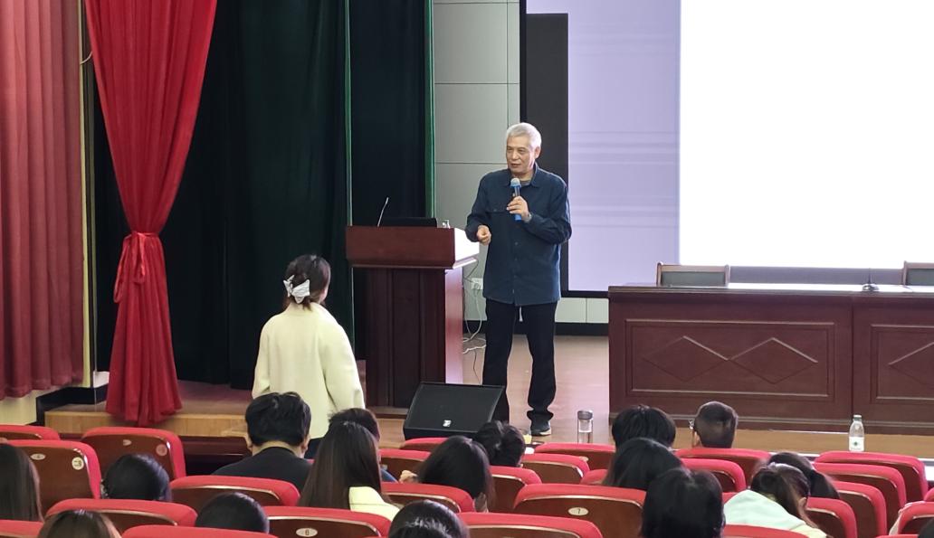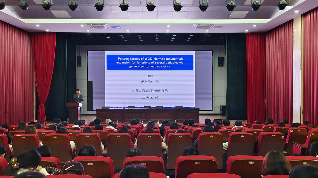 曹健教授介绍了杭州师范大学数学学院研究生招生情况,并鼓励热爱数学、立志科研的同学报考杭州师范大学。他作了题为“Poisson kernels of q-3D Hermite polynomials expansion for functions of several variables via generalized q-heat equations”的报告。该报告讲述了q-热方程与q-正交多项式的深刻联系,以及如何一步步对已有的数学问题进行多角度思考,提出问题并解决问题。