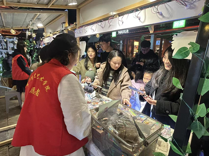 据统计,市集第一周累计收益突破千元,部分收入将专项用于市集维护,形成“文化传播 — 消费赋能 — 遗产保护”的良性循环。活动的火爆举办,既彰显了公众对传统文化的深厚热爱,更印证了高校青年参与文化振兴的强大活力,实现了文化传播、实践育人、文旅消费的多重成效。