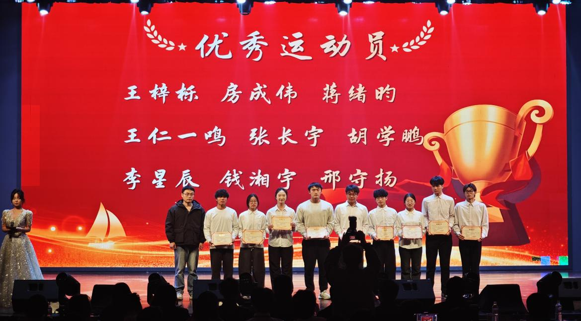 表彰环节是大会核心亮点。学院院长邓林宣读表彰决定后进行颁奖环节。王梓栎等9人获“优秀运动员”称号,姚世琪等5人获评“明日之星”,祖睿铖等4人获“运动会突出贡献奖”,董家俊等10人当选“优秀志愿者”,杨春雨等4人获评“优秀干部”,丁森等8人荣获“学科竞赛之星”。团体奖项方面,2025级建筑学3班等3个班级获评“运动会先进班级”,男子4×400接力队等3支队伍获“运动会优秀团队”称号,2023级工程造价班等4个班级分获“书香团支部”“文明班级”“优良学风班级”荣誉称号。