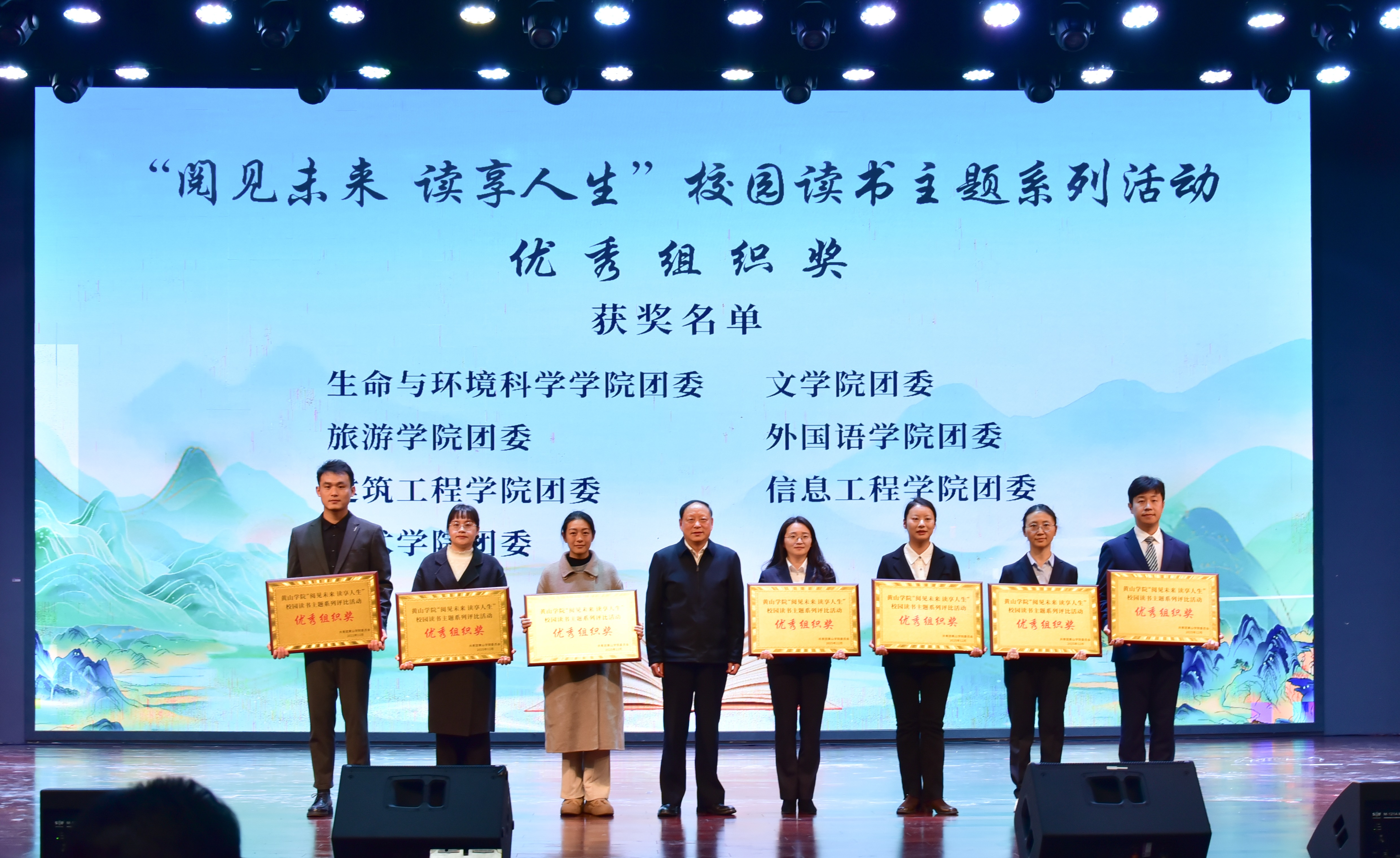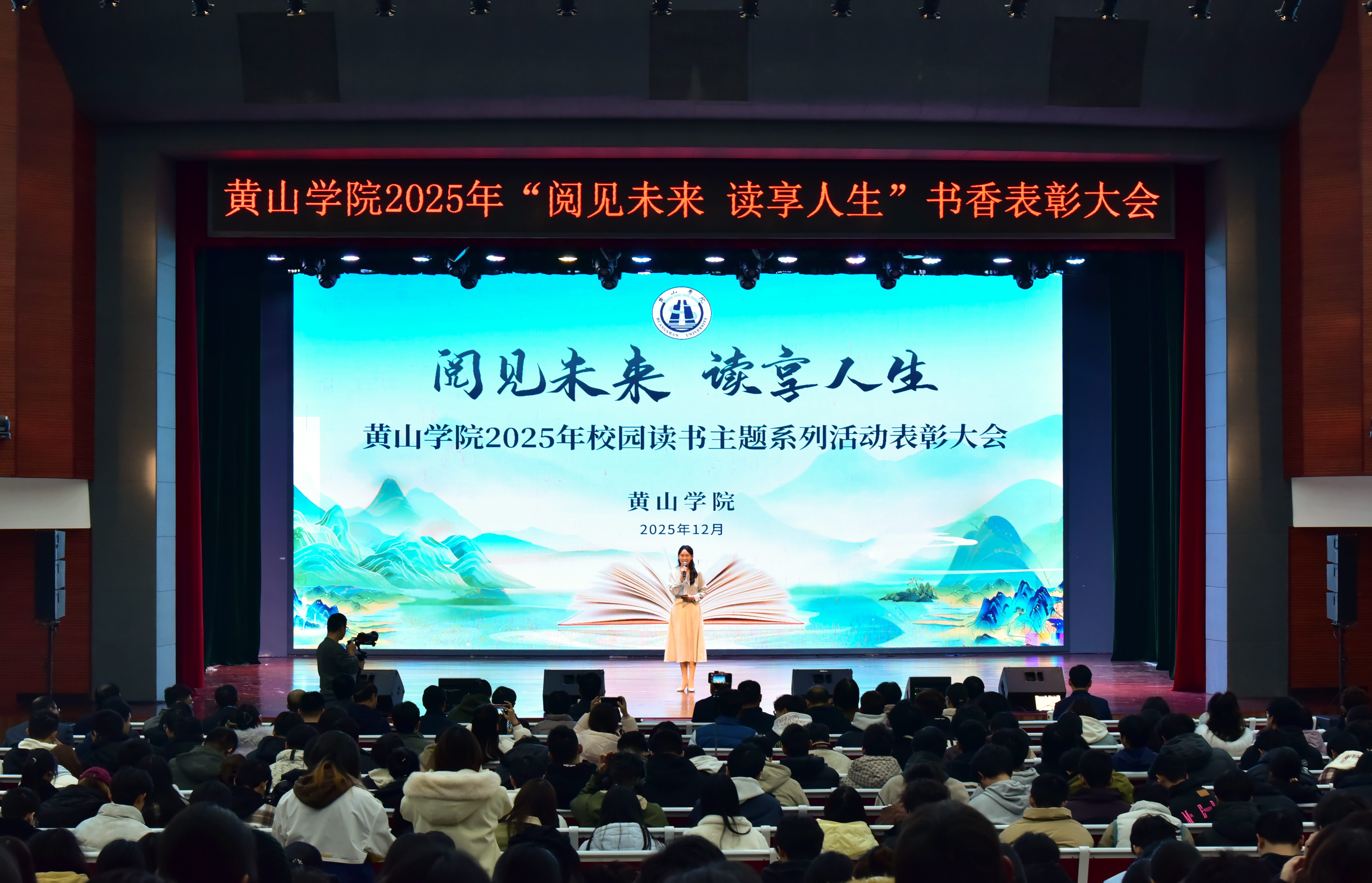 12月23日下午,我校于率水校区大学生活动中心大礼堂举办“阅见未来 读享人生”2025年校园读书主题系列活动表彰大会。校党委书记李铁范,校党委委员、组织部部长王国平出席大会,学工委成员单位负责人、各学院党组织负责人、受表彰集体和个人代表、校院两级团干部及学生代表约900余人共同参会。