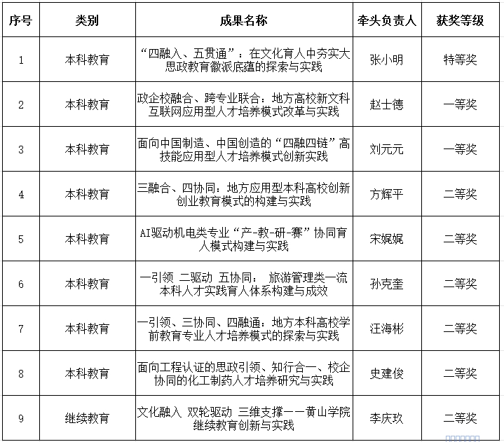 近日,安徽省教育厅公布了2025年省级教学成果奖获奖名单。我校再创佳绩,申报的9项教学成果全部荣登榜单,荣获特等奖1项、一等奖2项、二等奖6项,获奖数量与等级均实现历史性突破,充分彰显我校教育教学改革与人才培养的硬核实力。