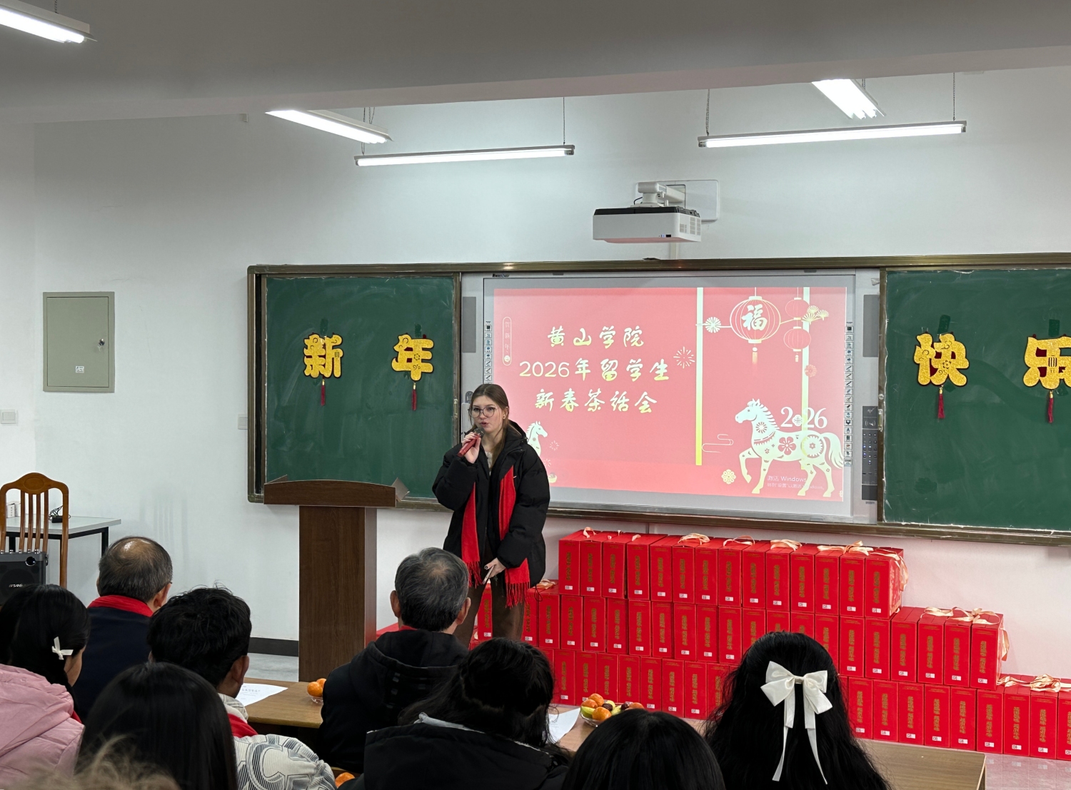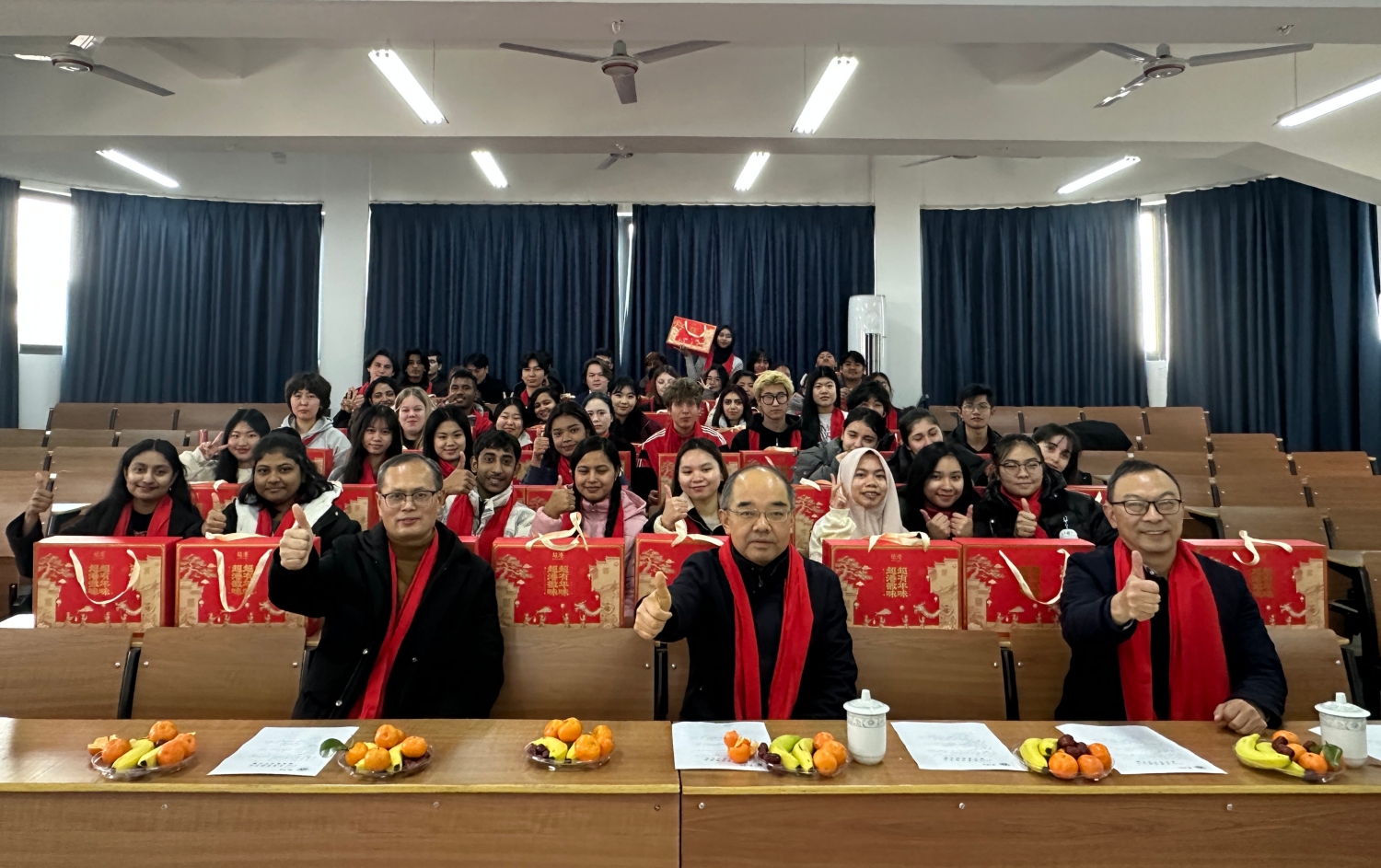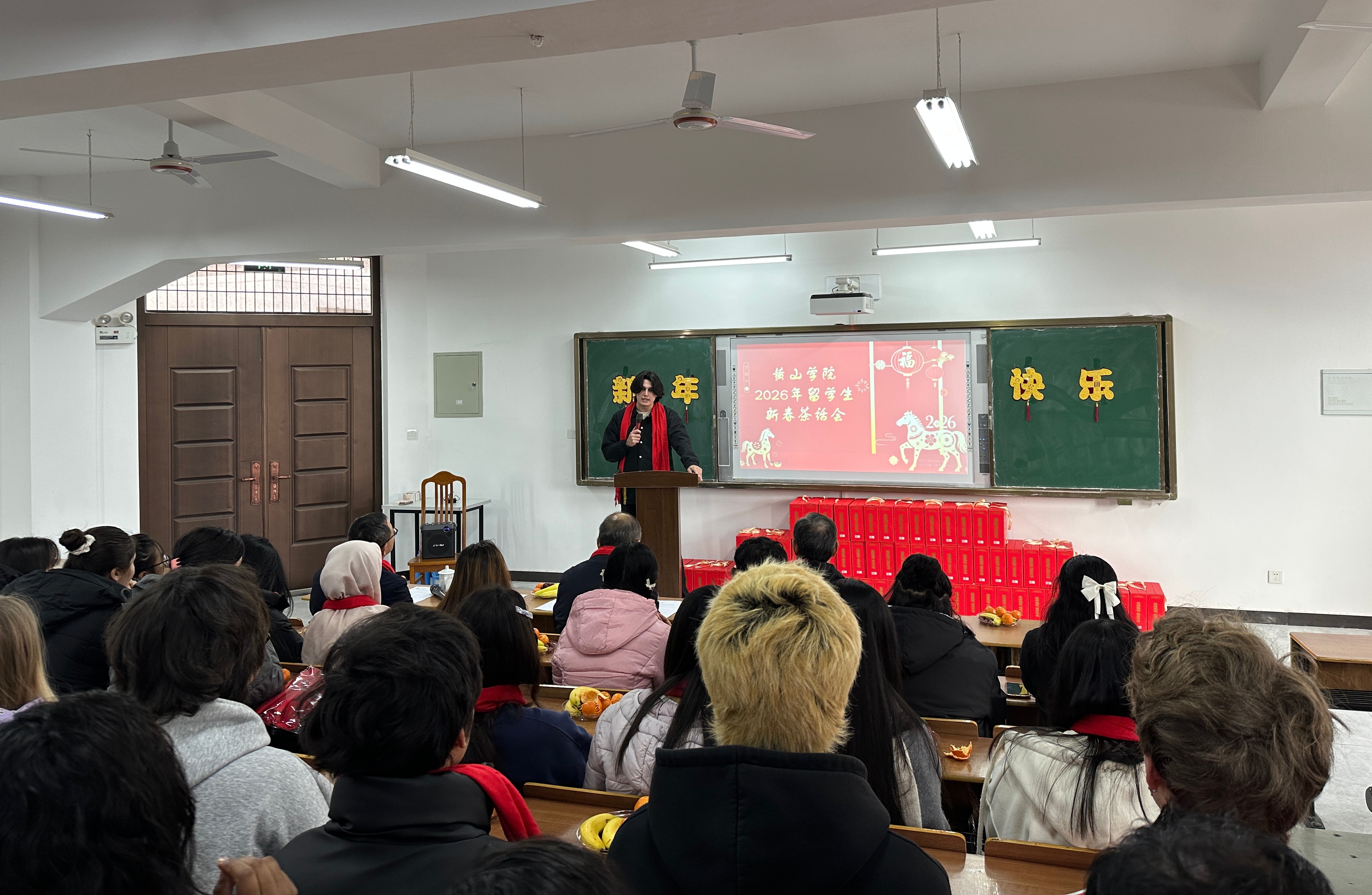1月22日下午,在2026年新春佳节即将来临之际,我校举办来华留学生新春茶话会。校党委委员、副院长张小明出席茶话会,与来自俄罗斯、泰国、孟加拉国、乌兹别克斯坦、印度尼西亚等十几个国家的70余名留学生欢聚一堂,共迎新春。