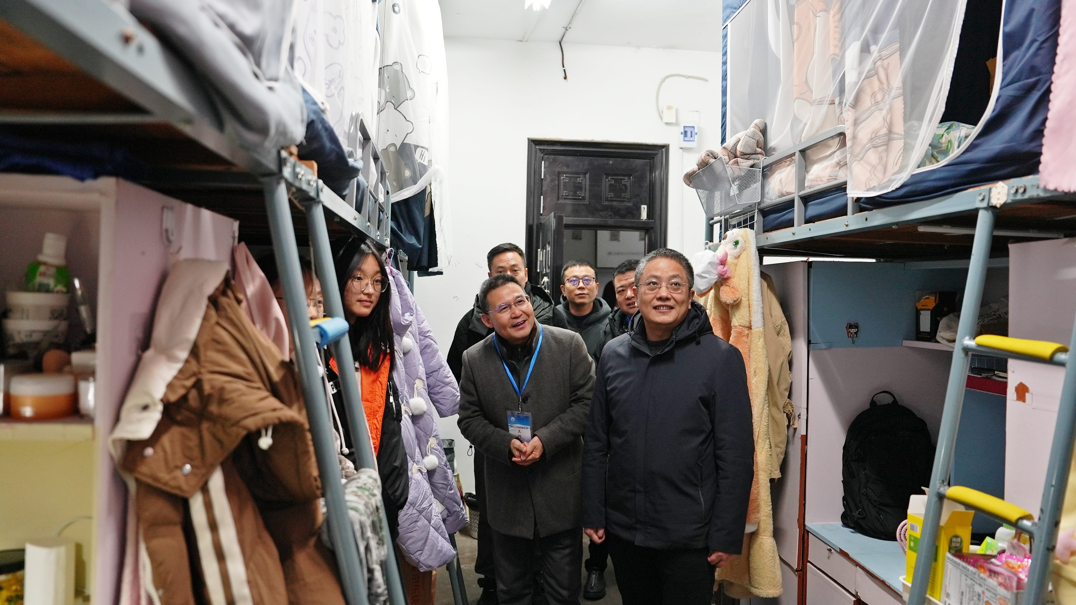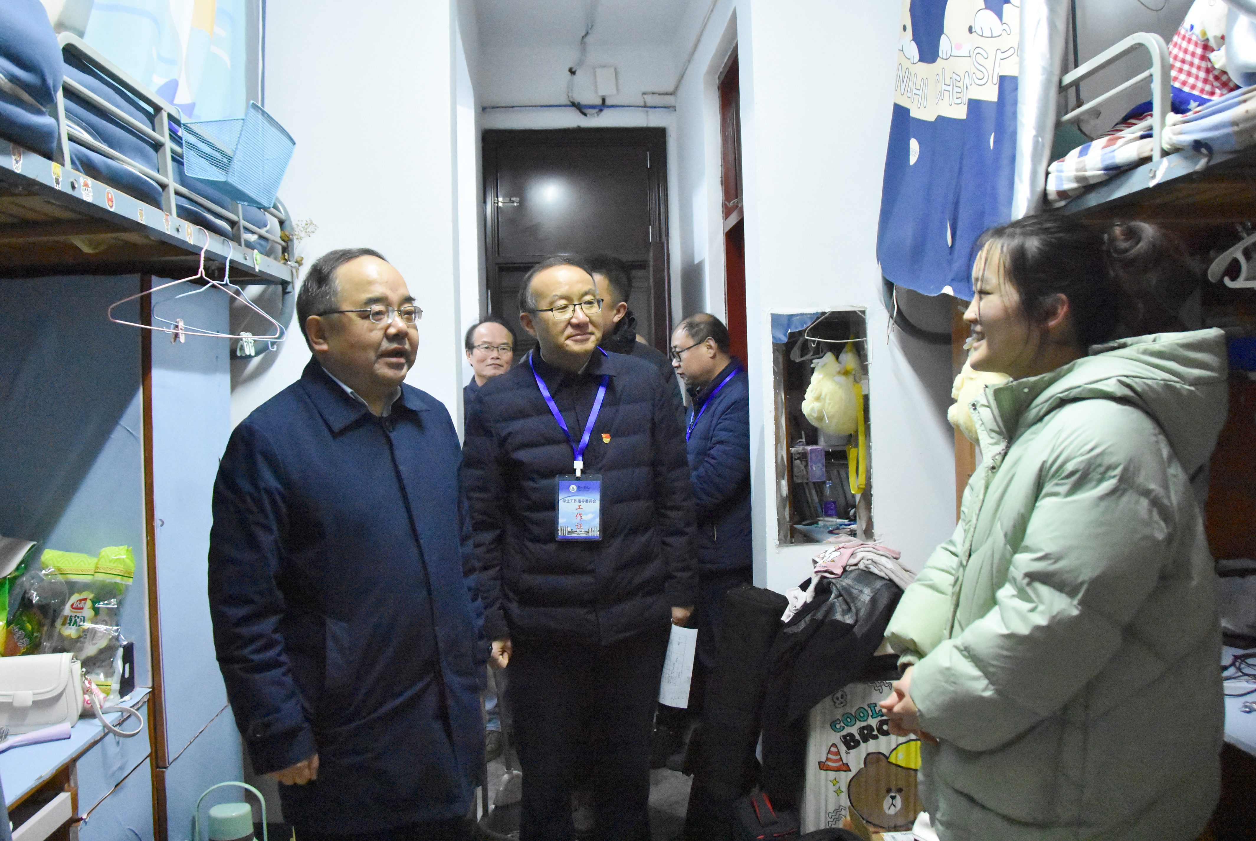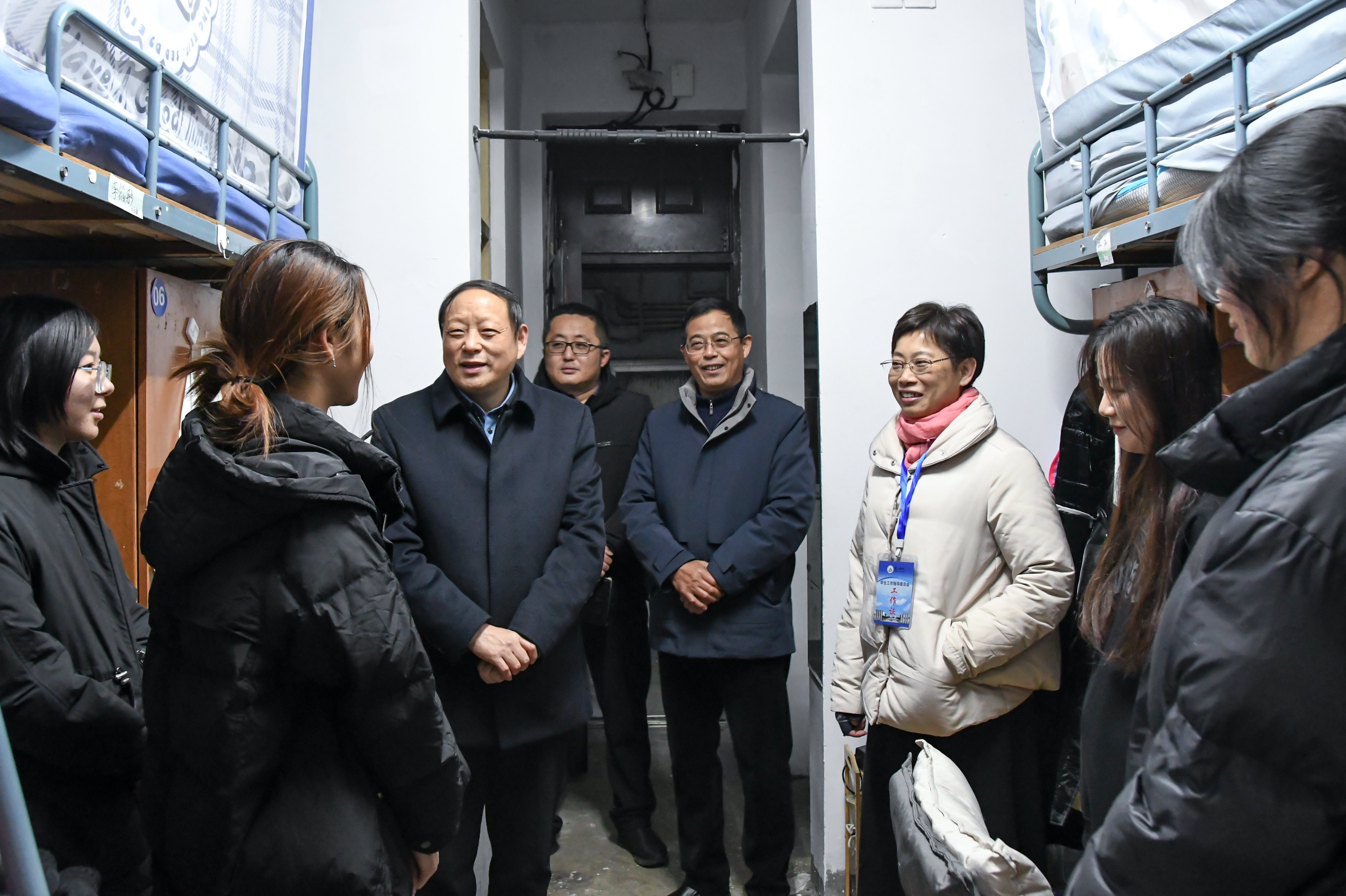 每到一间宿舍,校领导都与同学们亲切谈心,详细询问他们的家庭近况、学业成绩、课余生活等,听取他们对学校教育教学、学生管理、后勤保障、安全稳定等方面的意见。同时,希望同学们加强体育锻炼,遇到困难及时沟通解决,以积极乐观的心态,饱满的学习热情,全身心投入到期末课程学习、复习备考、考研就业中。校领导还仔细查看了学生宿舍的宿舍环境卫生、公寓消防、人员出入登记等情况,叮嘱同学们增强安全防范意识,遵守安全管理规定,确保生命财产安全。