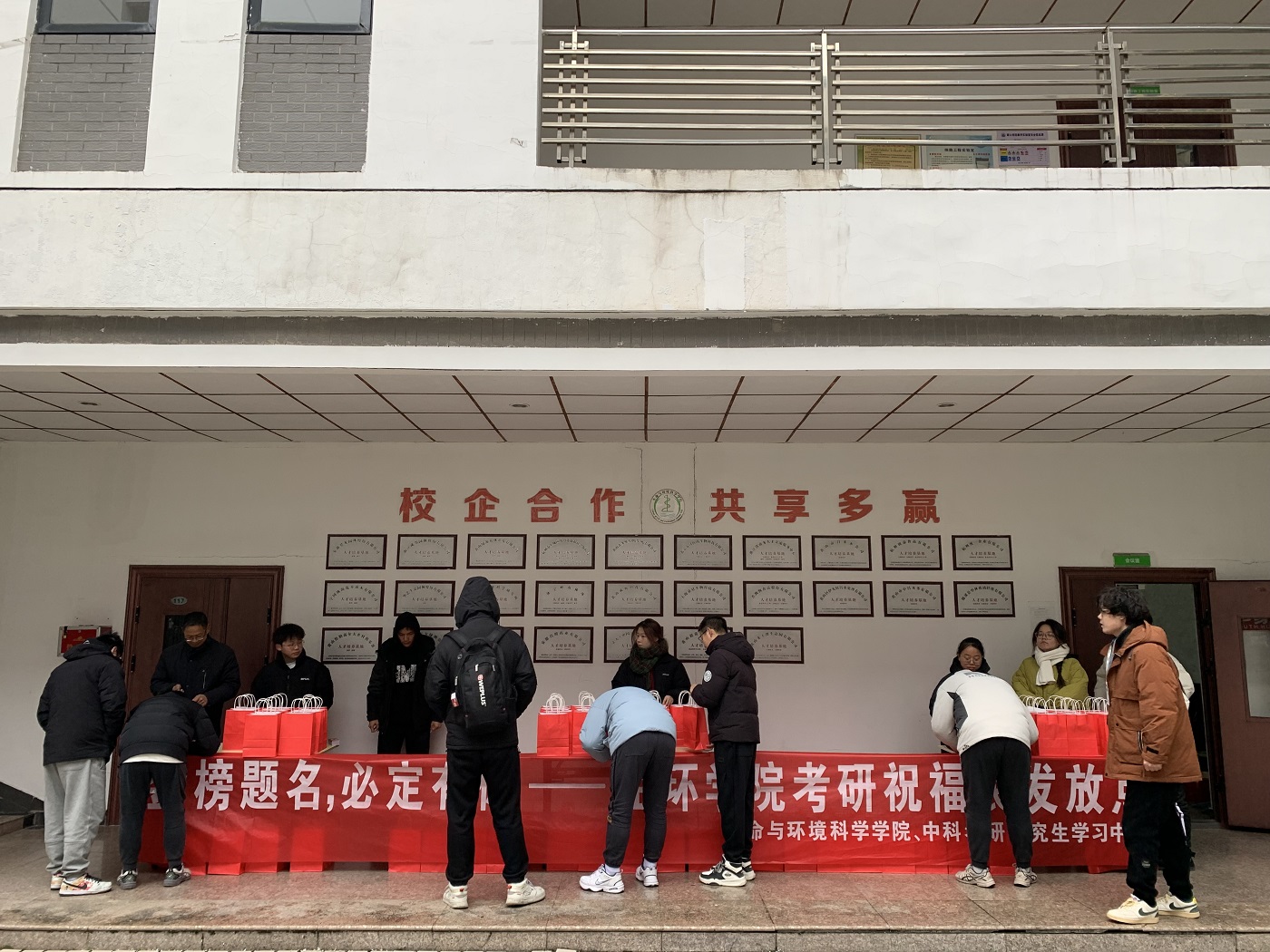 又是一朝寒冬至,又是一年考研时。为陪考研学子跑完“最后一公里”,助力考研冲刺,12月18日,生命与环境科学学院开展“金榜题名,必定有你”为考研学子发放祝福礼袋活动。生命与环境科学学院党政领导吕顺清、潘健和团委指导老师王秋阳参与此次活动,学院学生会成员负责发放。