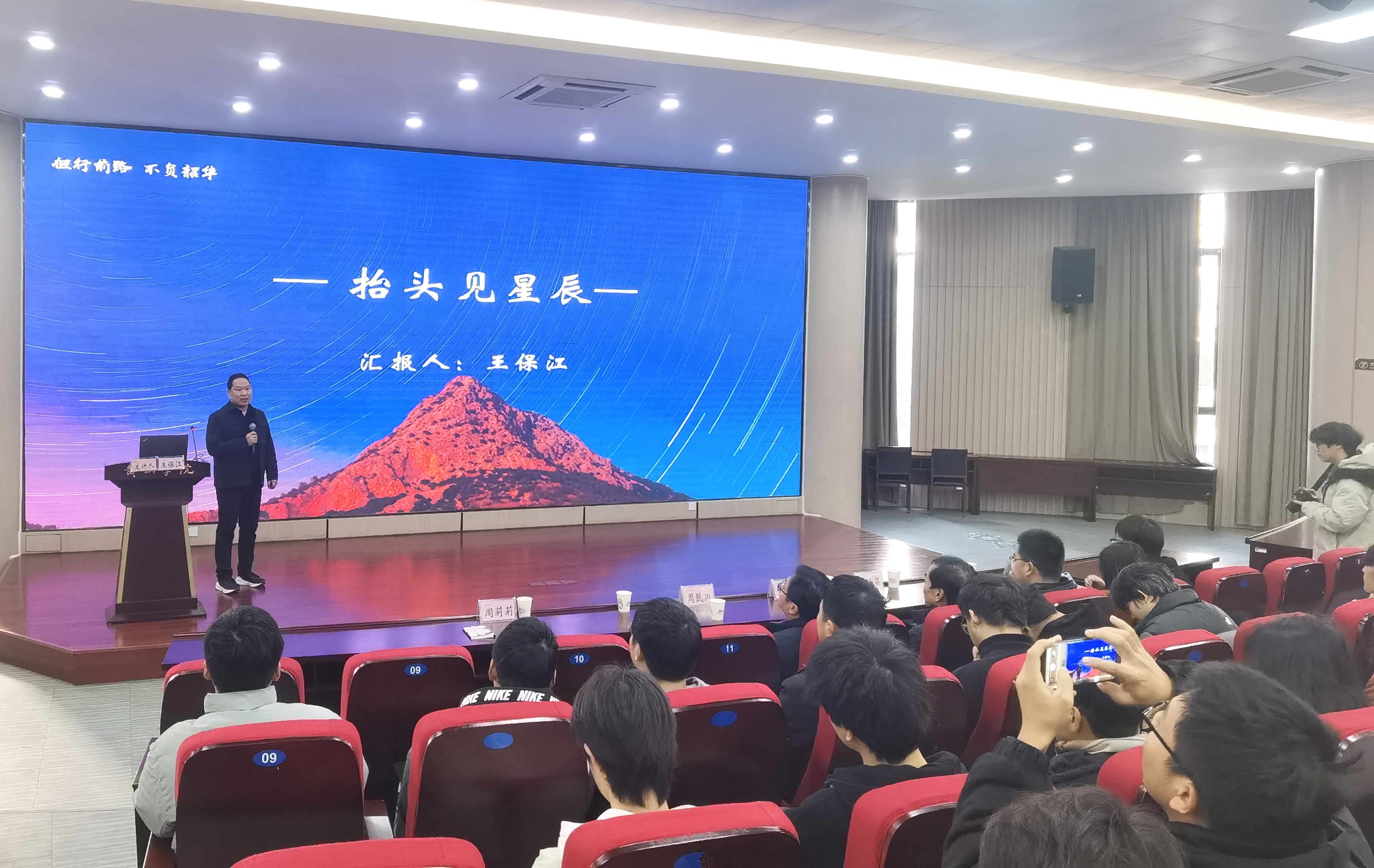 王保江结合自身经历,以生动实际的案例为同学们讲述了自己就业和创业的实践经历。他从生活的态度、学习的建议、面对困难的力量、企业管理思路等方面娓娓道来,分享了从求学到工作以来的深刻感悟。建议同学们要明确自己的奋斗目标,结合自身专业特点和特长,多读书多运动,积极参加社会实践等各类活动,不断增长自身才干,全面提升综合素质。