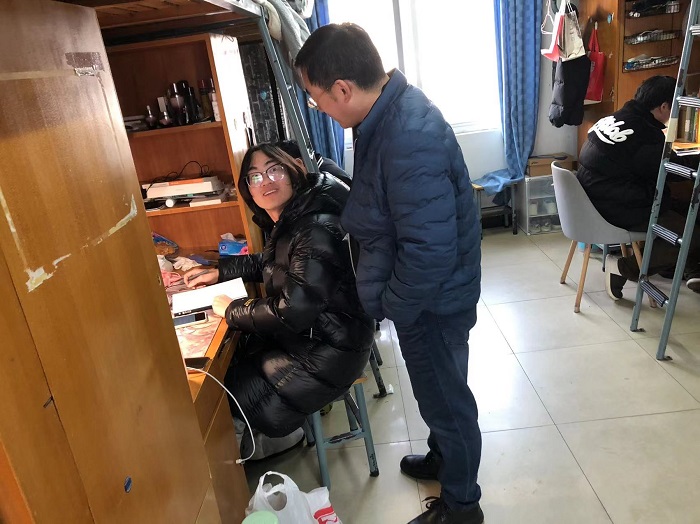 为进一步发挥党员教师的模范带头作用,切实解决学生生活学习中的重难点问题,2024年1月3日,在数学与统计学院党总支的号召下,党员教师深入学生寝室进行考前走访谈心活动,旨在了解学生近期的心理动态和考前压力等问题。《数学与统计学院党员教师联系学生宿舍制度》是学院一直坚持的特色做法,党员教师深入宿舍进行走访谈心,帮助学生解决实际困难的同时又让他们感受到学院的温暖。