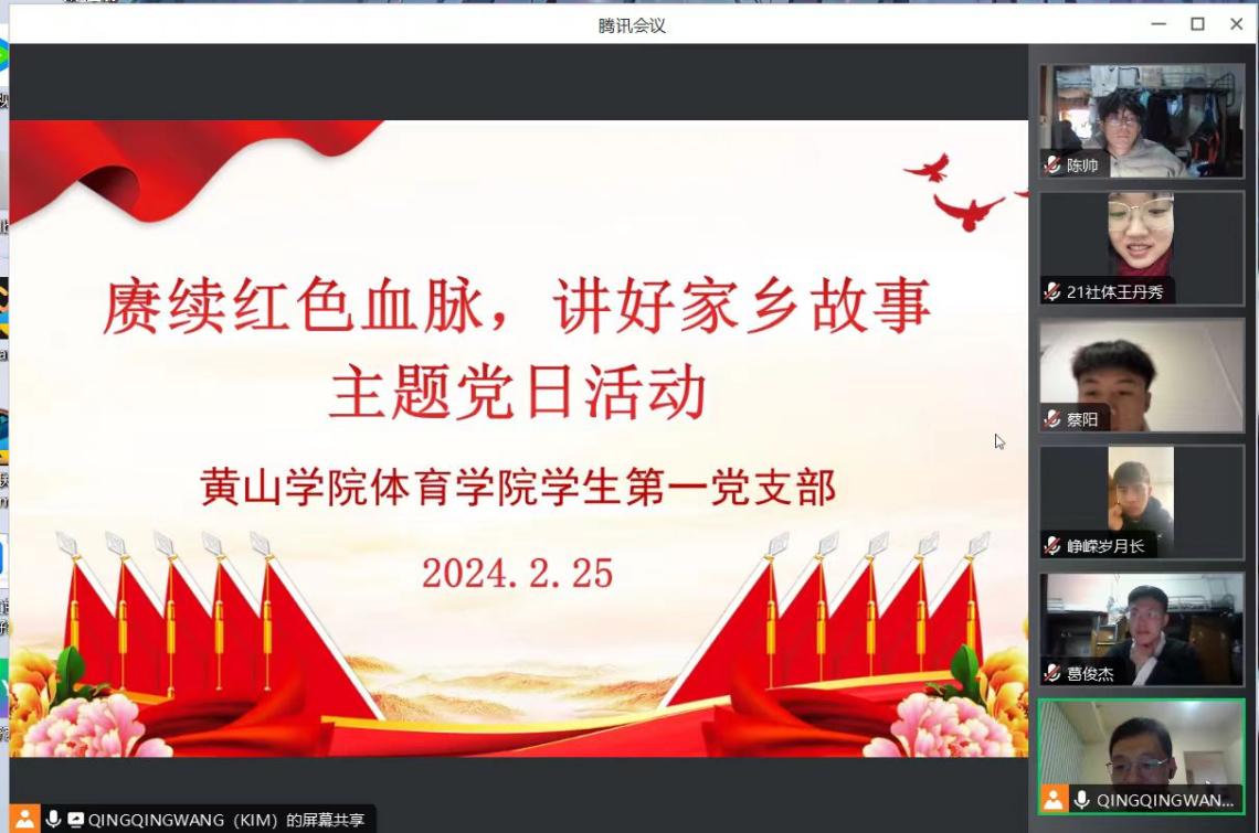 2月25日,体育学院学生第一党支部开展了“赓续红色血脉,讲好家乡故事”主题党日活动。活动由党支部书记王庆庆主持,党部所有师生党员参加会议并在线进行了个人分享。