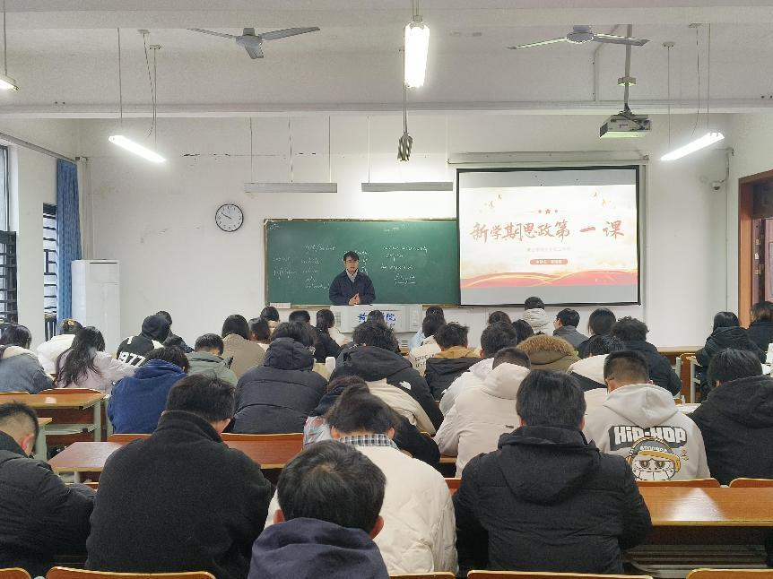 班级思想政治班主任给学生上新学期思政第一课,以事说理、以事喻理、以事彰理,引导同学们深刻理解新时代新征程中国共产党的使命任务,要求同学们加强理论学习,坚定理想信念,树立正确的世界观、人生观和价值观自觉把爱国情、强国志融入到报国行的青春奋斗中。