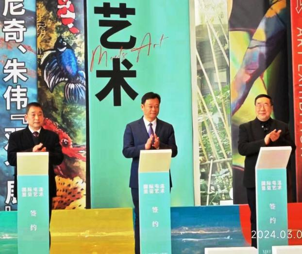 在仪式现场,屯溪区人民政府、黄山学院艺术学院、中国科学院大学李政道科学与艺术中心三方签订“国际屯溪”艺术交流项目战略合作框架协议。