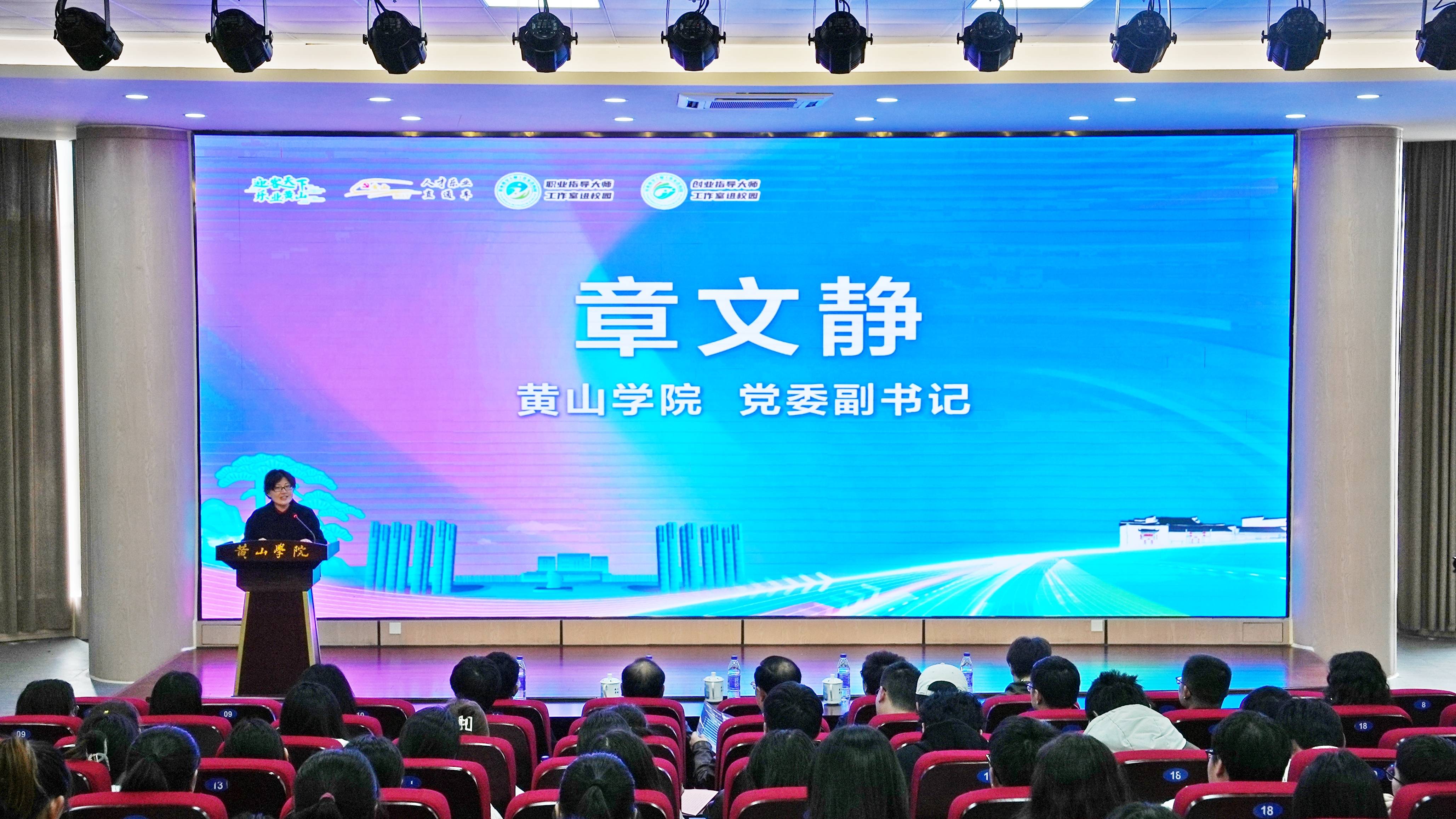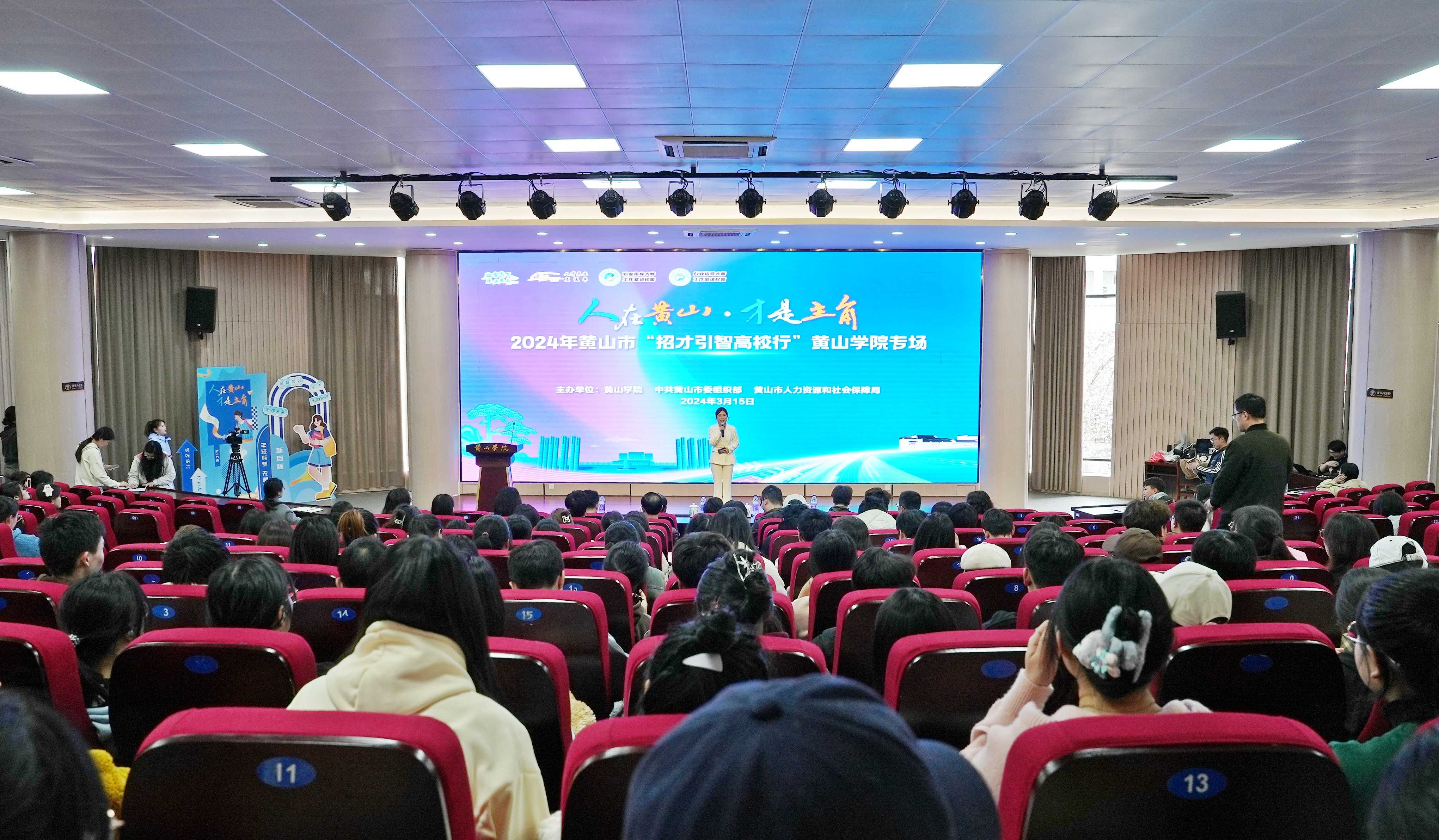 3月15日下午,我校在率水校区文端楼二楼报告厅举办2024年黄山市“招才引智高校行”专场活动。校党委副书记章文静,黄山市人民政府副秘书长孙思旻,市委组织部副部长、市人力资源社会保障局局长程燕,市委组织部副部长程峰,学生处及相关学院负责人出席活动。市委组织部人才办、市人才发展服务局、黄山人才发展集团负责同志以及我校文学院、旅游学院、化学化工学院部分学生参加活动。